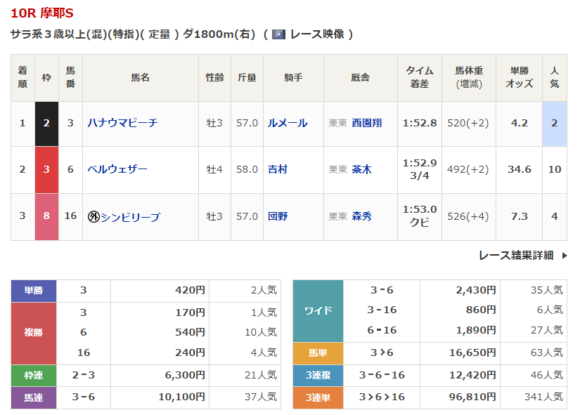 ◎ベルウェザー(10人気)2着 複勝540円