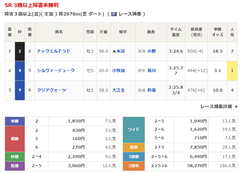 中山競馬の穴馬的中結果
