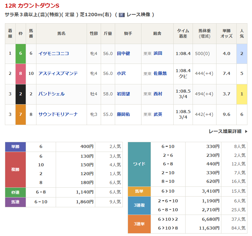 - 12/28【阪神12R】カウントダウンステークス