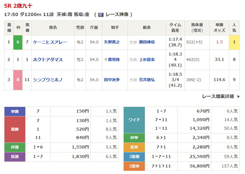 このレースでは断然人気の★ケーニヒスアレー(1番人気)が1着に入るも、穴馬の◎ホクトアダマス(8番人気)が2着、もう1頭の穴馬◎シンプウミホノ(9番人気)が3着にそれぞれ好走してくれました。人気薄の2頭が入ったことで3連複は25,590円、3連単は56,800円の高配当となりました。