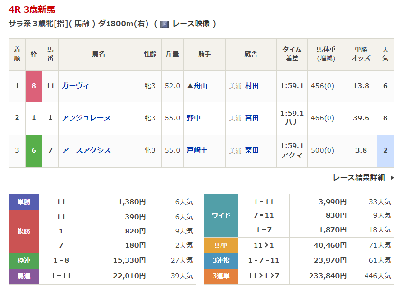 - 1/10【中山4R】3歳新馬
