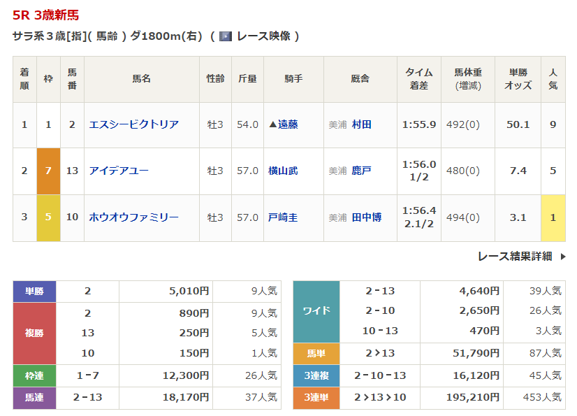 ◎アイデアユー(5人気)2着 複勝250円