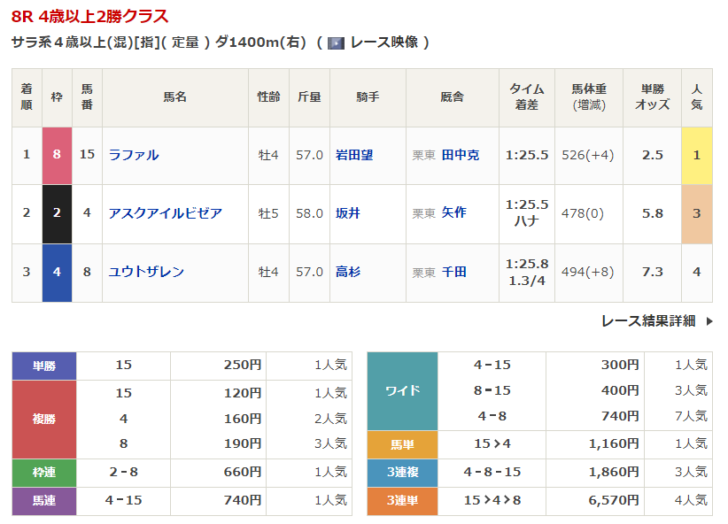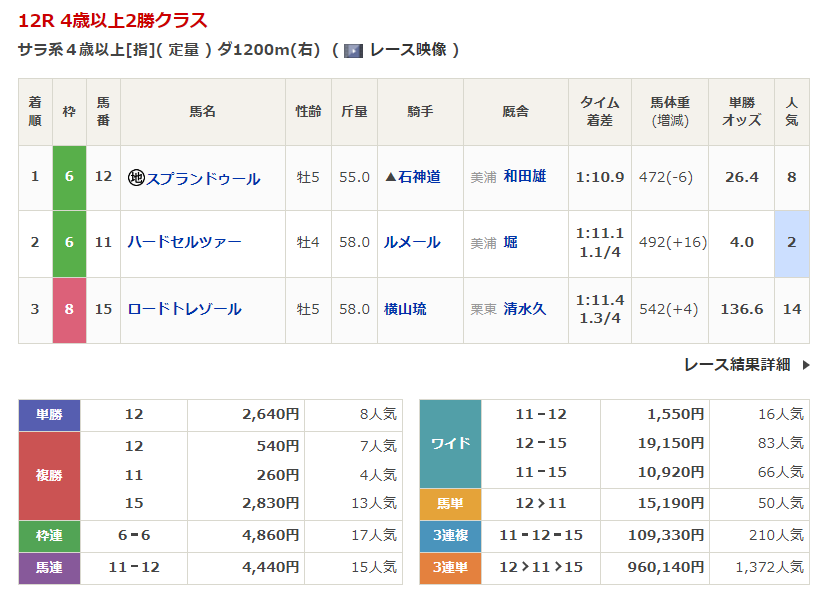 | 1/10 京都 | 12R | 3R | 25.0% |