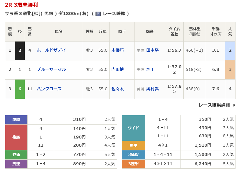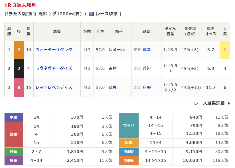 - 1/11【中山2R】3歳未勝利