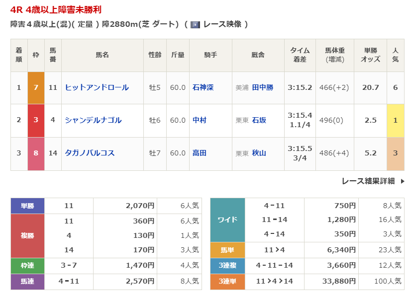 - 1/12【中山4R】4歳以上障害未勝利