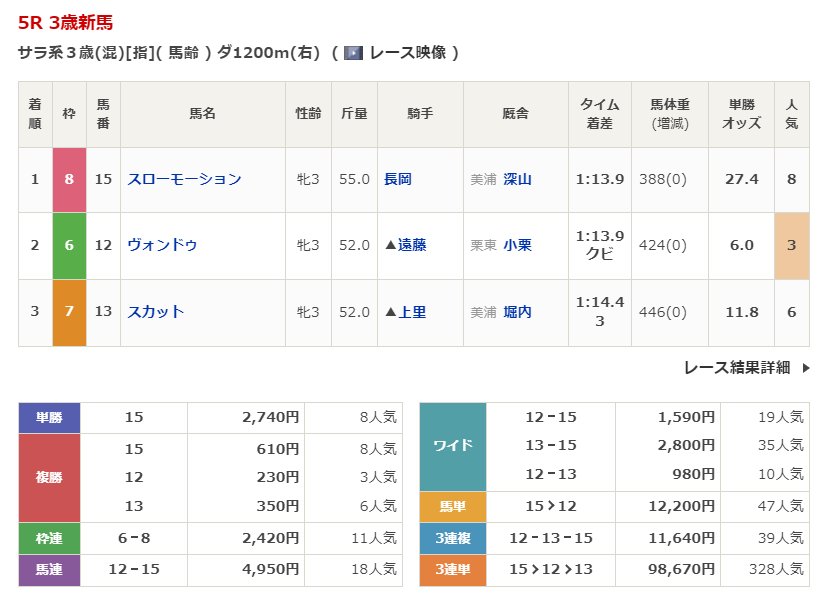 ◎スローモーション(8人気)1着 単勝2,740円、複勝610円