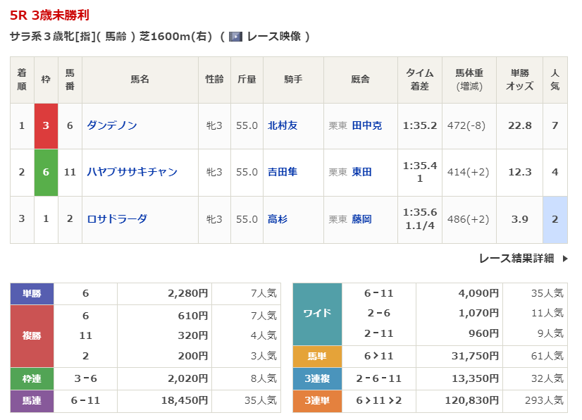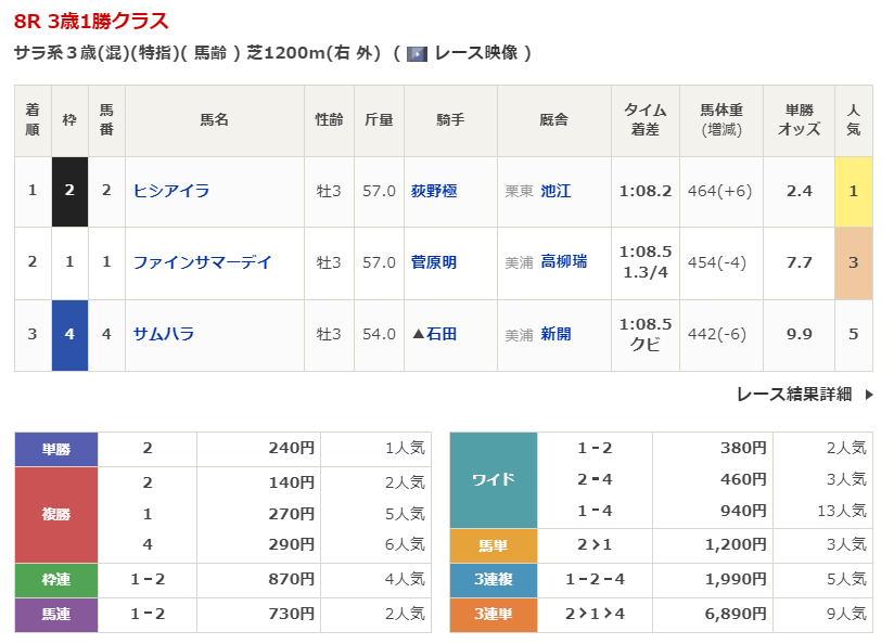 ◎サムハラ(5人気)3着 複勝290円