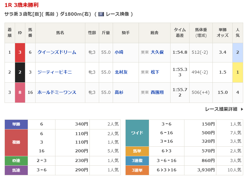 - 1/10【京都1R】3歳未勝利