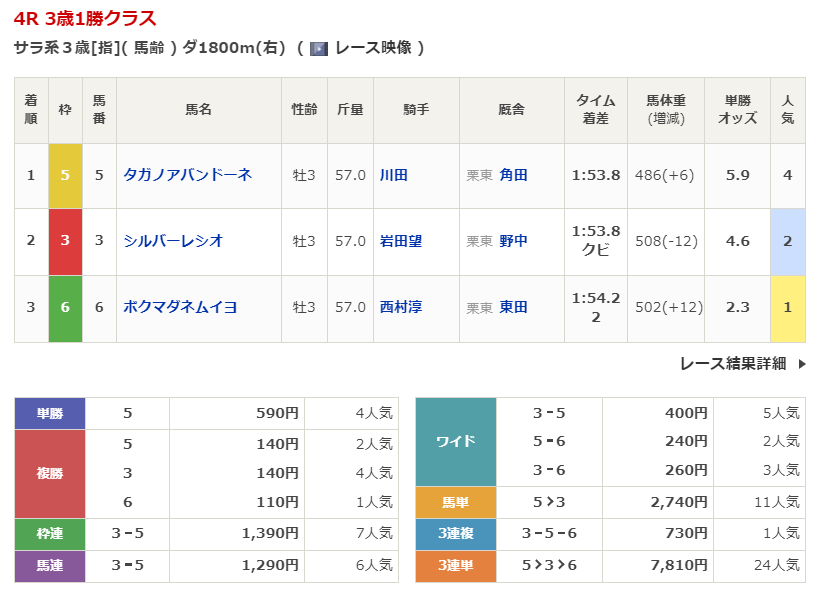 1/10 中山4R 3歳新馬 ダート1800m 波乱度D