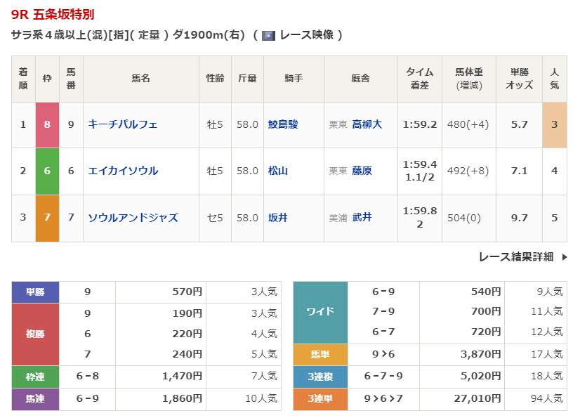 - 1/11【京都9R】五条坂特別