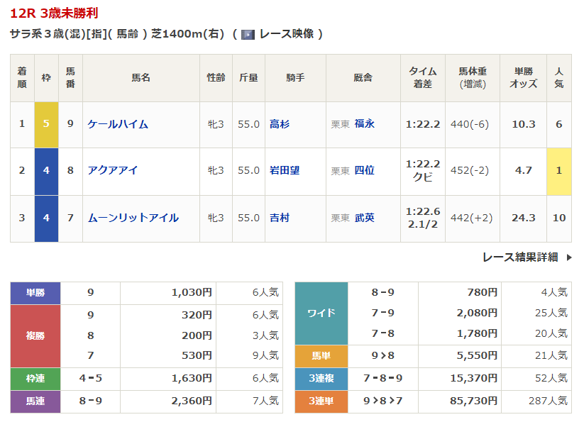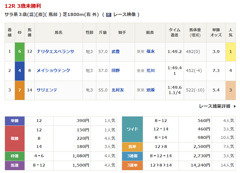 - 1/12【京都12R】3歳未勝利
