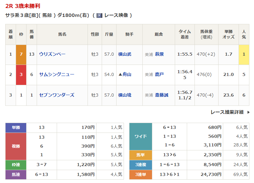 - 1/17【中山2R】3歳未勝利