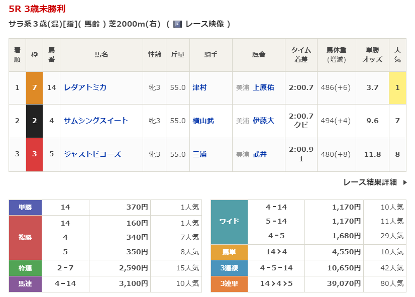 その他にも相手馬との組合わせでは先週は以下のレースが的中。