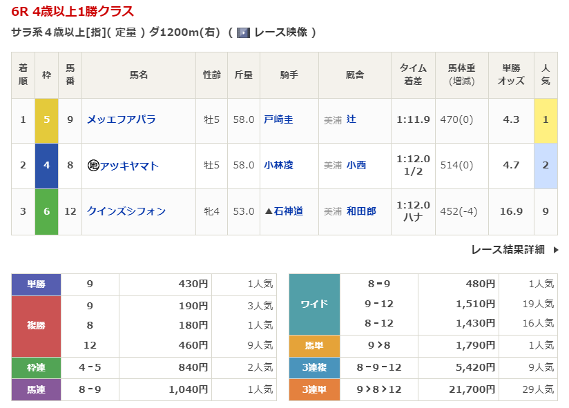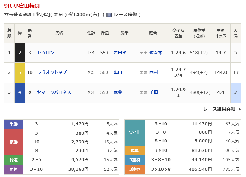 京都競馬の穴馬的中結果