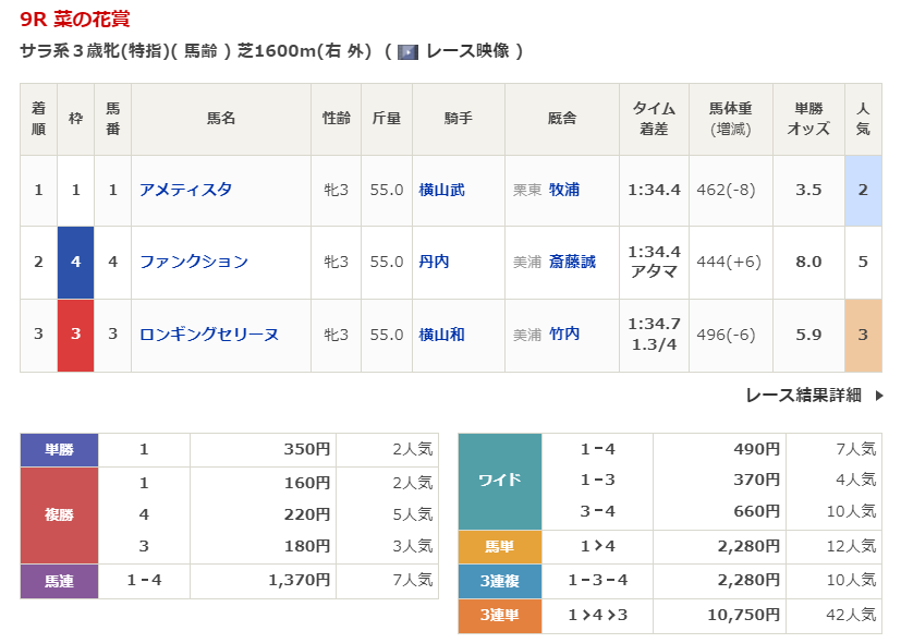 - 1/17【中山9R】菜の花賞