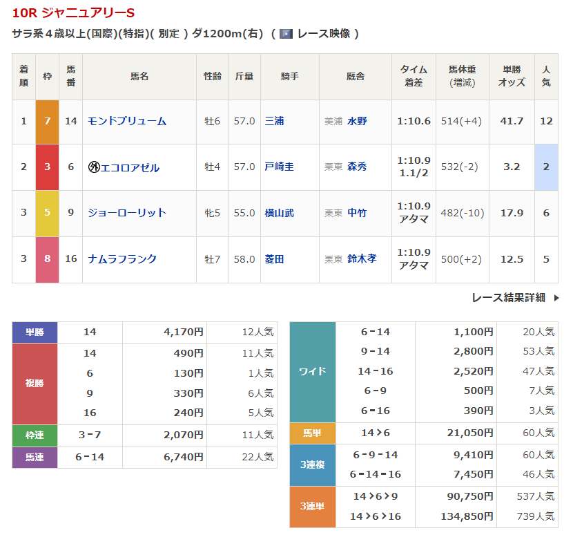 - 1/18【中山10R】ジャニュアリーステークス