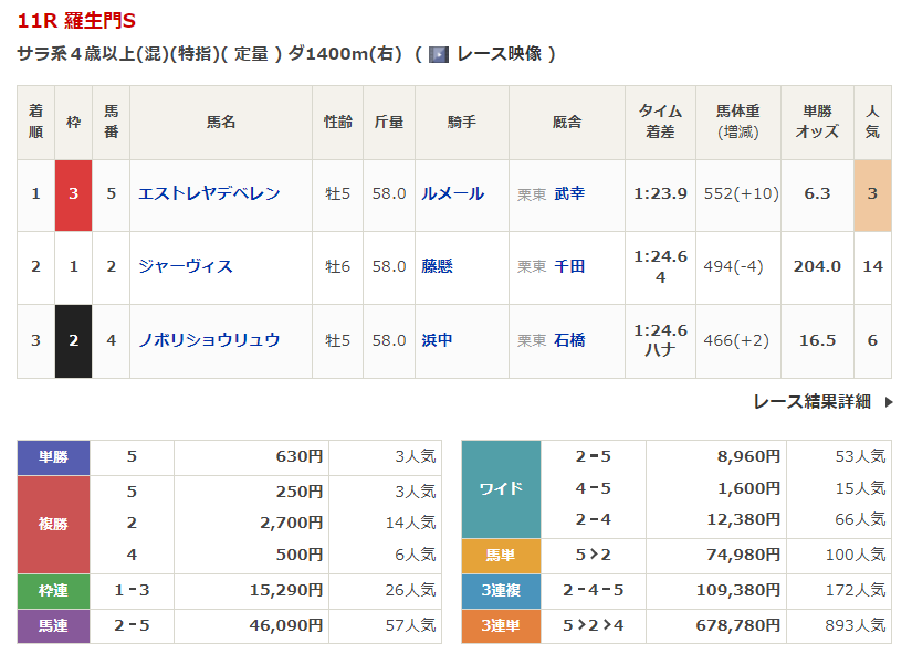 ◎エアサロメ(4人気)1着 単勝830円、複勝250円