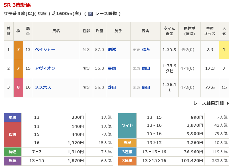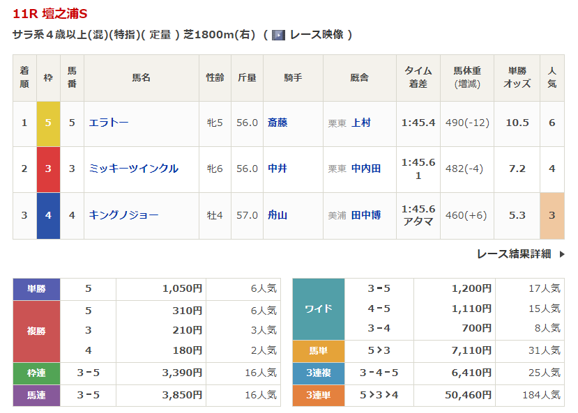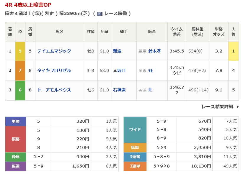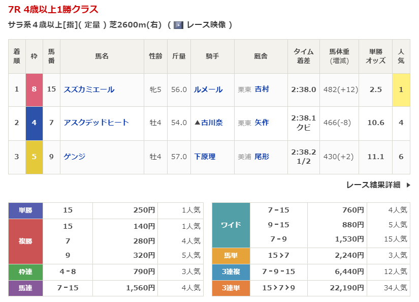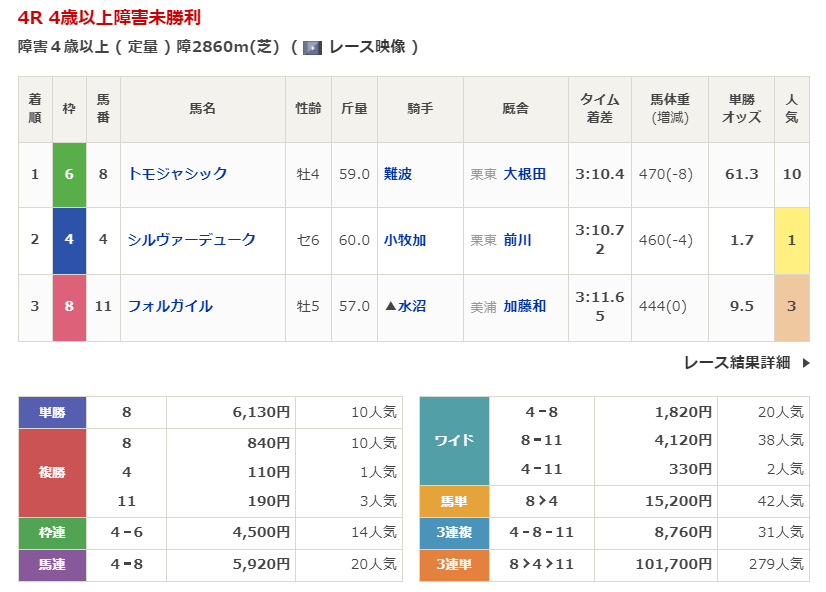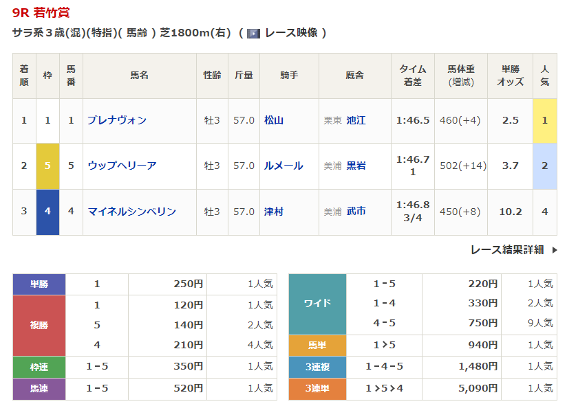 ◎マイネルシンベリン(4人気)3着 複勝210円