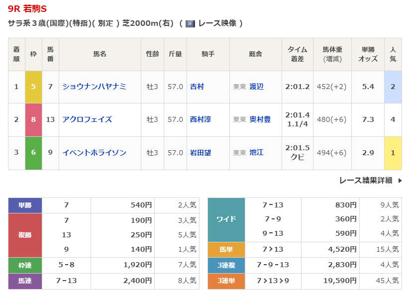 ◎ワイドクリーガー(5人気)1着 単勝1,380円、複勝210円