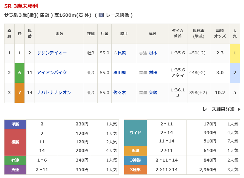 ◎ナムラオリガミ(13人気)3着 複勝760円