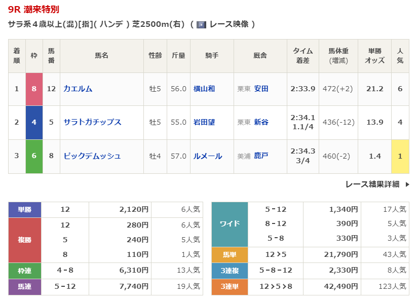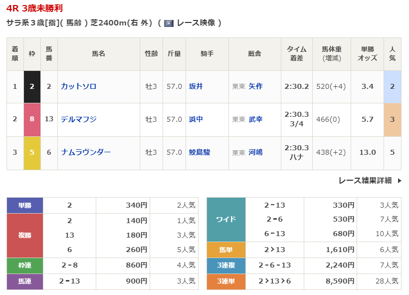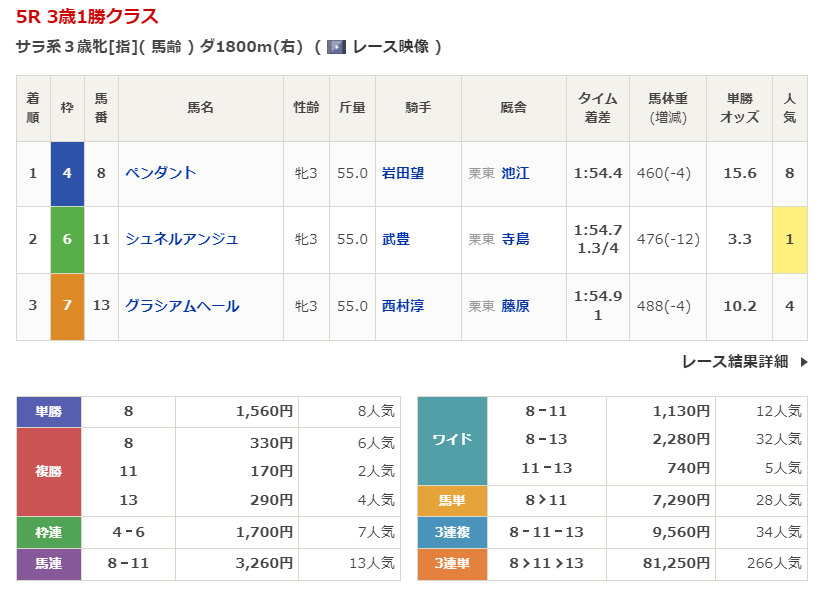 ◎ナムラヴンダー(5人気)3着 複勝260円