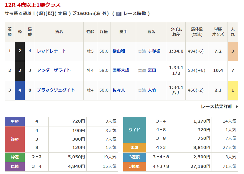| 3/7 中山 | 12R | 5R | 41.7% |