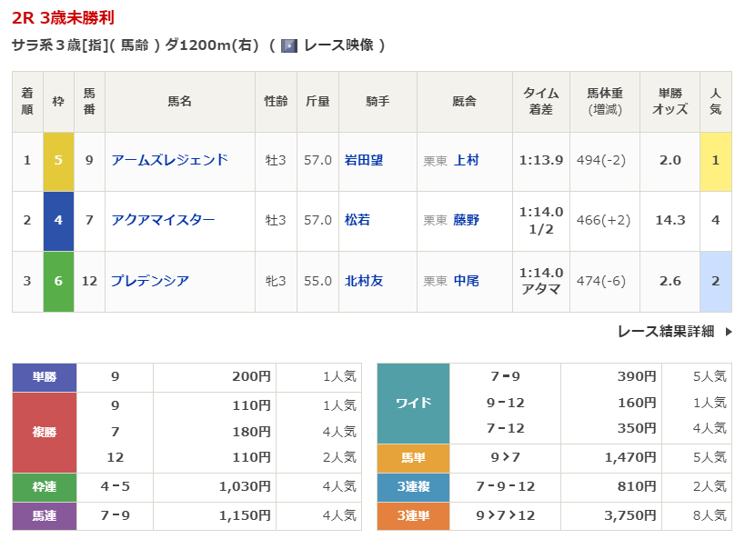 | 3/7 中山 | 12R | 10R | 83.3% |