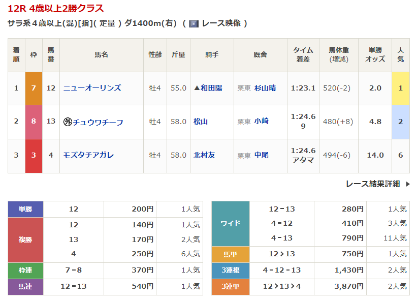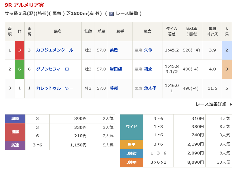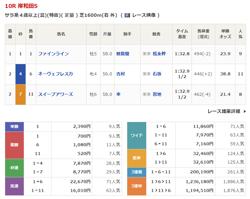◎ネーヴェフレスカ(11人気)2着 複勝1,080円