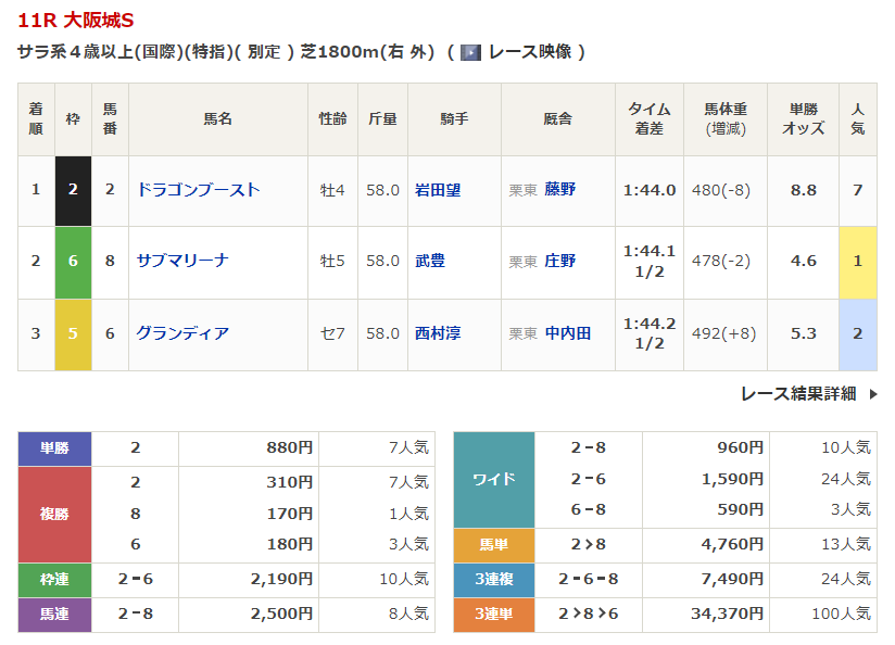 ◎ドラゴンブースト(7人気)1着 単勝880円、複勝310円