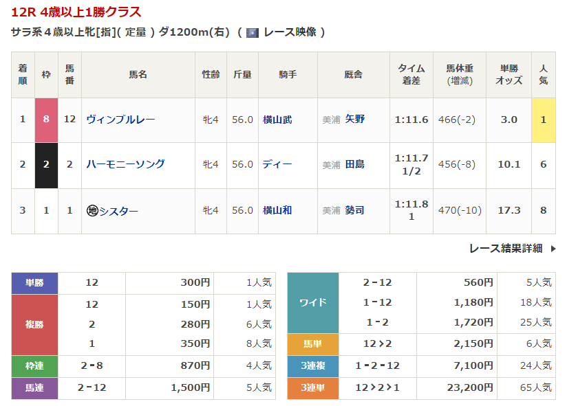 | 4/12 中山 | 12R | 6R | 50.0% |