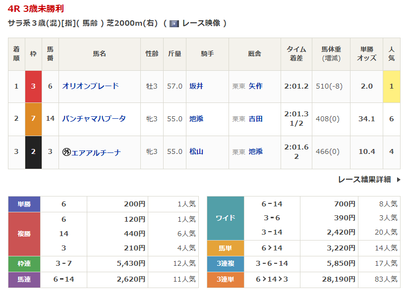 ◎パンチャマハブータ(6人気)2着 複勝440円