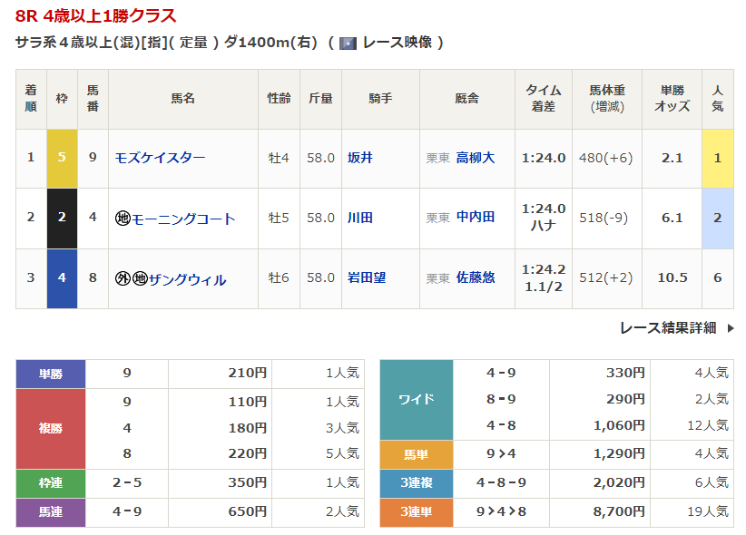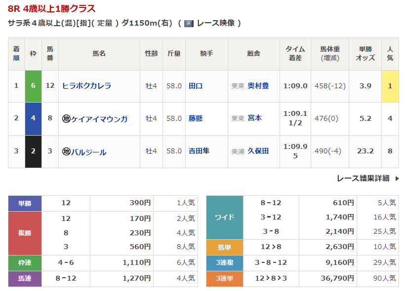 ◎ケイアイマウンガ(4人気)2着 複勝230円