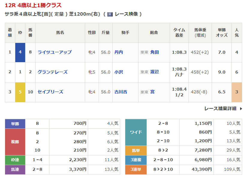 ◎ライツユーアップ(4人気)1着 単勝700円、複勝270円