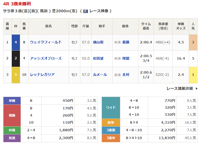 - 4/19【福島4R】3歳未勝利