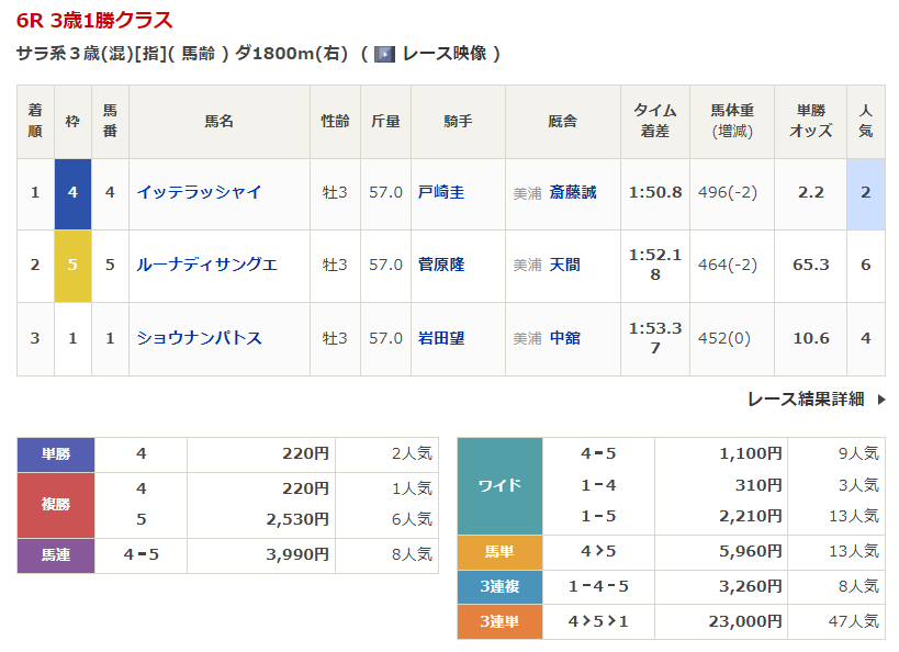 - 4/19【中山6R】3歳1勝クラス
