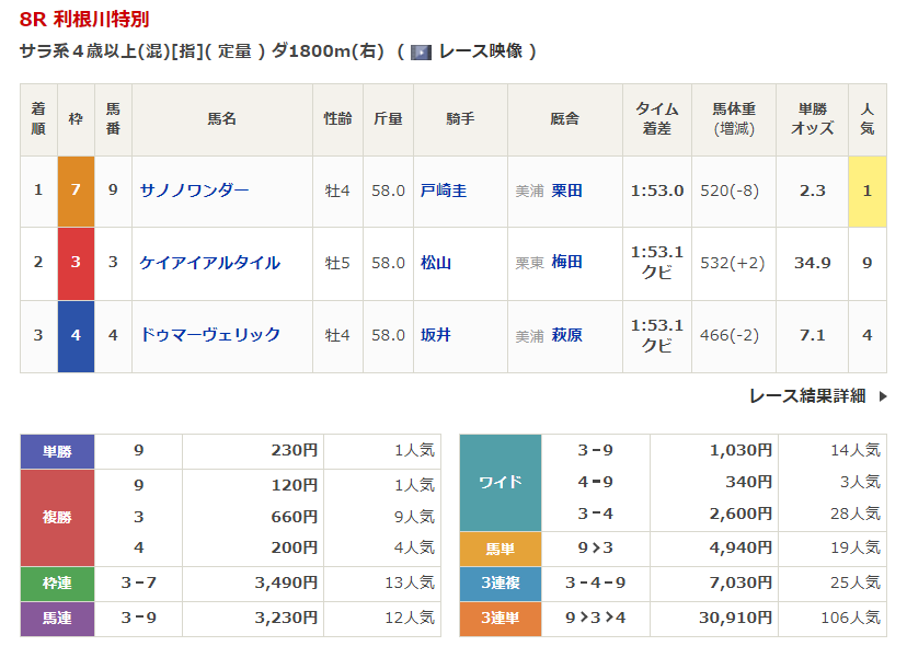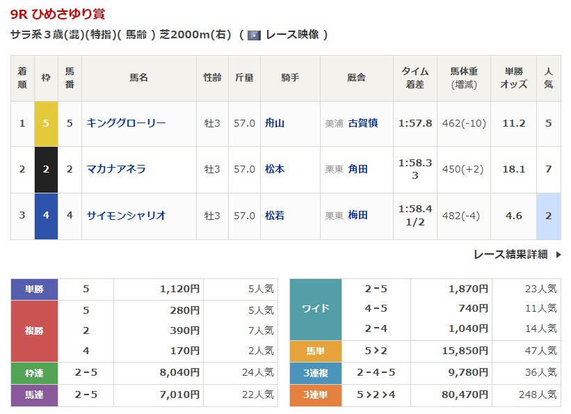 ◎サトノアイボリー(4人気)2着 複勝220円