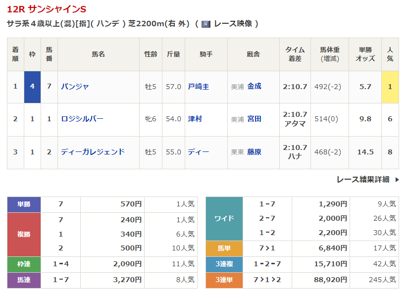中山競馬の穴馬的中結果