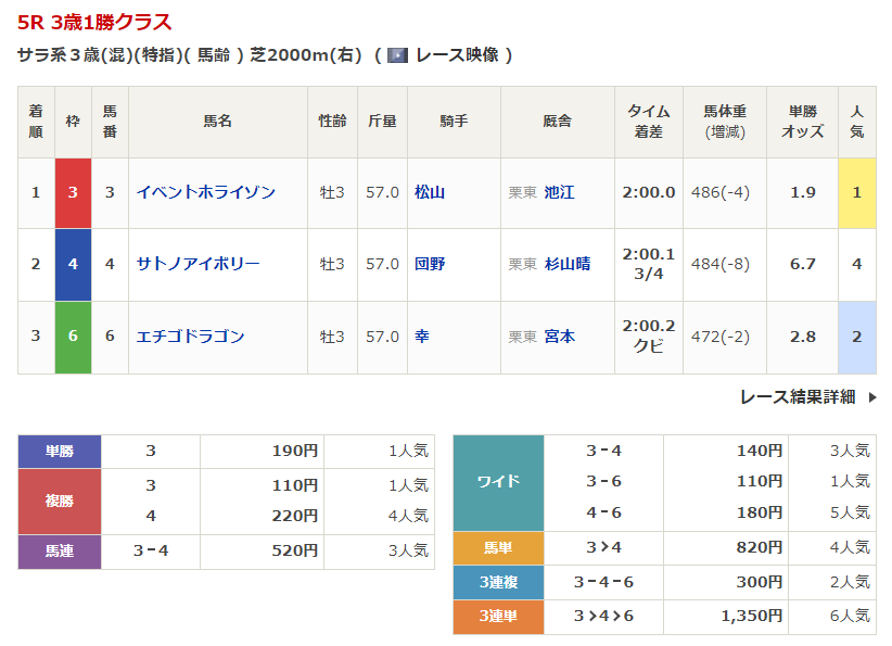 - 4/19【中山5R】3歳1勝クラス