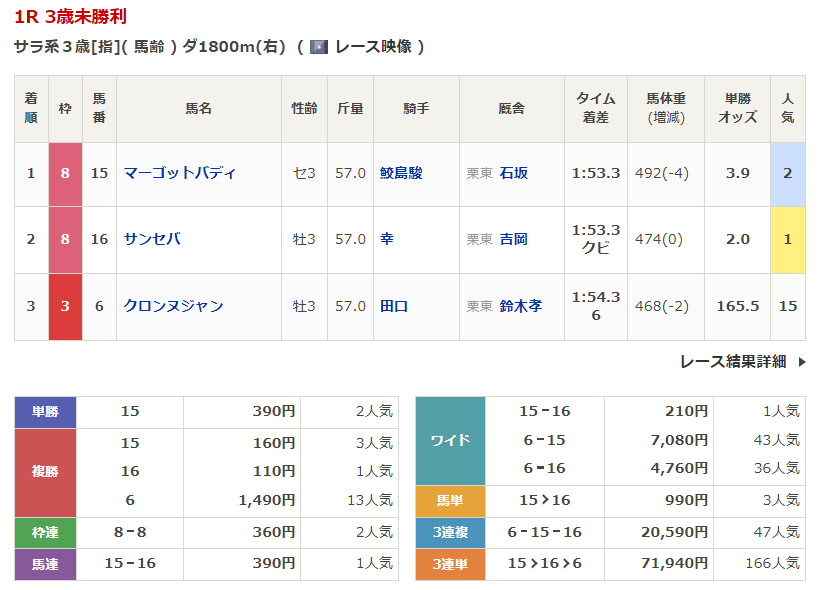 - 4/18【福島6R】3歳未勝利
