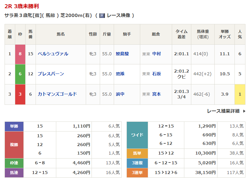 - 4/18【福島2R】3歳未勝利
