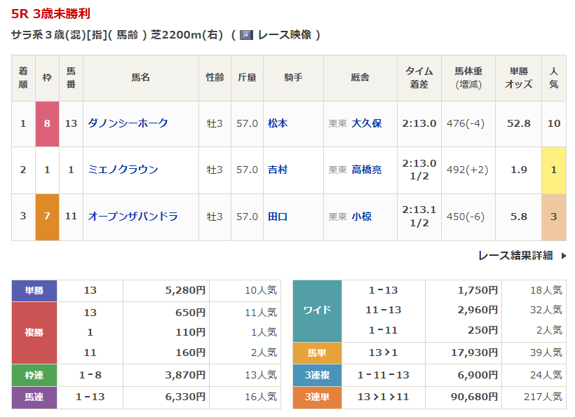 ◎ダノンシーホーク(10人気)1着 単勝5,280円、複勝650円