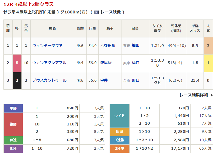 - 4/19【福島12R】4歳以上1勝クラス
