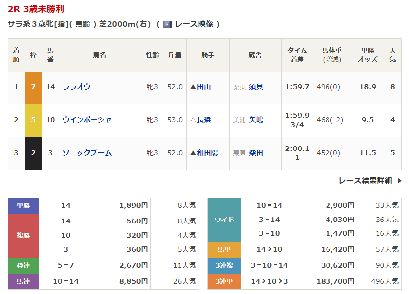 福島競馬の穴馬的中結果