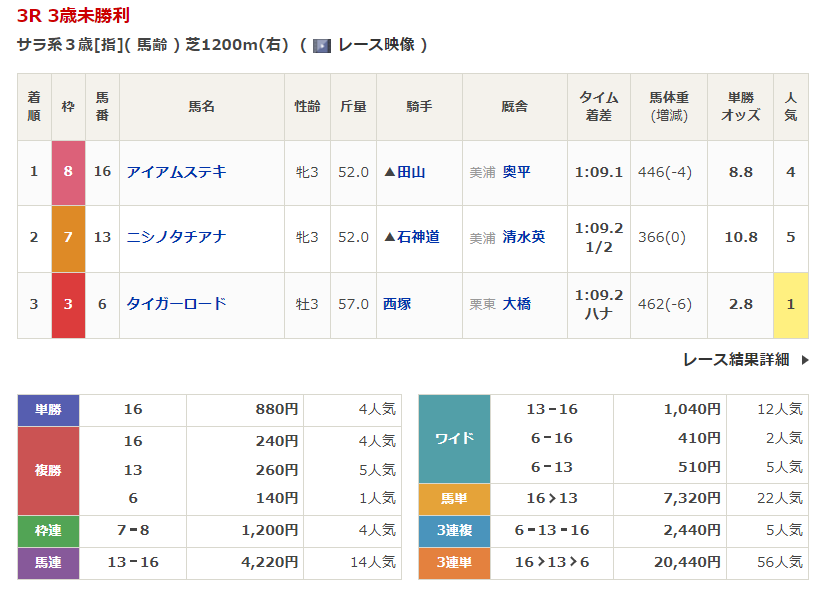 - 4/18【福島3R】3歳未勝利