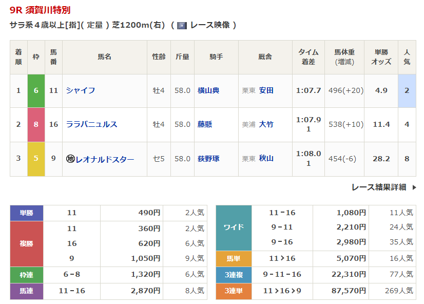 - 4/19【福島9R】須賀川特別