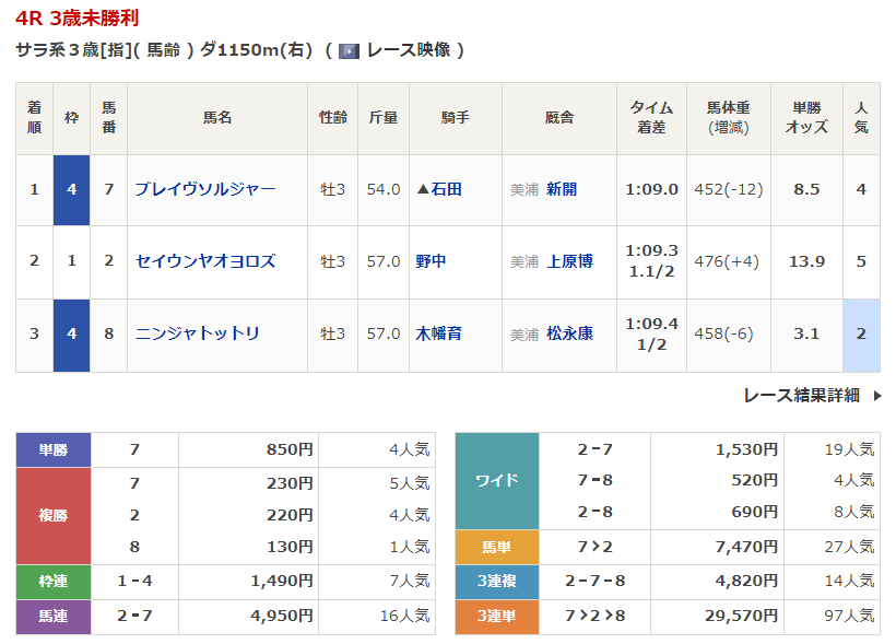 ◎ペプチドヤマト(8人気)3着 複勝420円