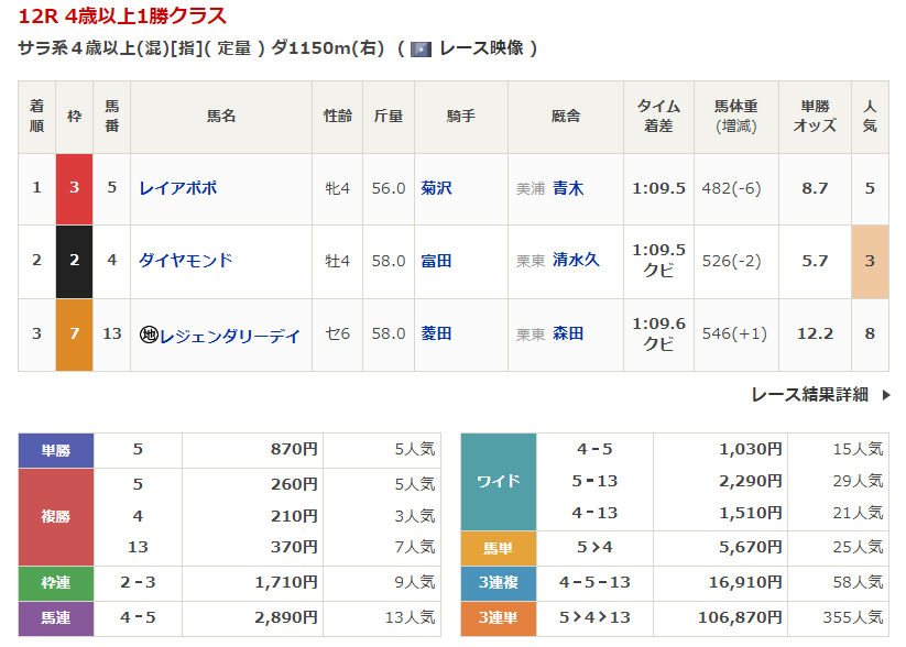 | 4/25 福島 | 12R | 6R | 50.0% |