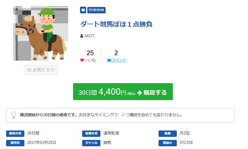 月額メルマガや予想記事の販売などユーザーの用途に合わせた購読が可能